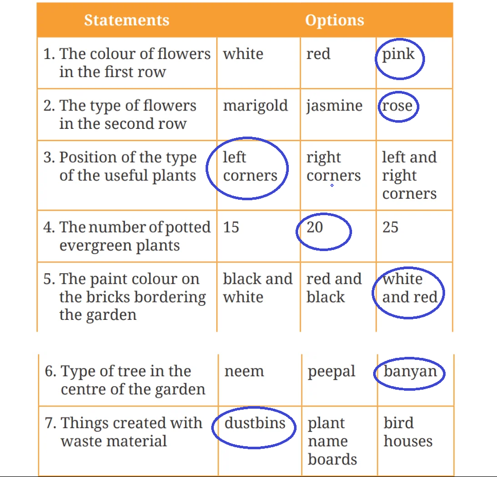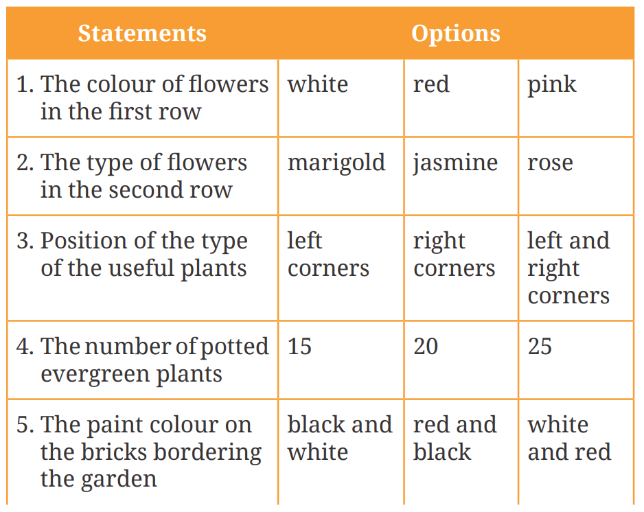 I. Work in pairs. Discuss what all you see in a garden. Think of the colours you see and where you see them. Share your responses with your teacher.