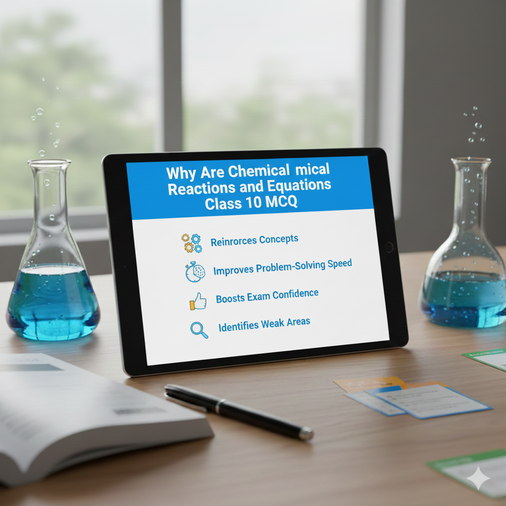 Chemical Reactions and Equations Class 10 MCQ Online Test (Free Practice with Answers) | CBSE Pattern are one of the most important study resources for every Class 10 student who wants to understand science easily and score high marks in exams. In this article you will learn how substances change, how reactions happen, and how to write and balance chemical equations correctly by solving different types of MCQs. Many students find this chapter confusing at first, but with the right explanation, it becomes simple, interesting, and even fun to learn.