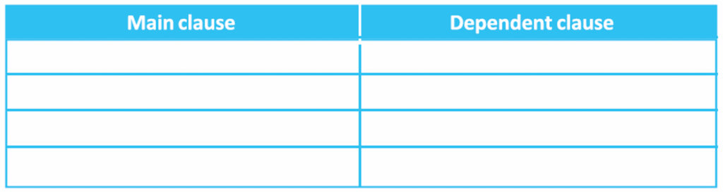 Read the following sentences. Identify the Main or Principal clause and the Dependent clause and fill in the chart given below: