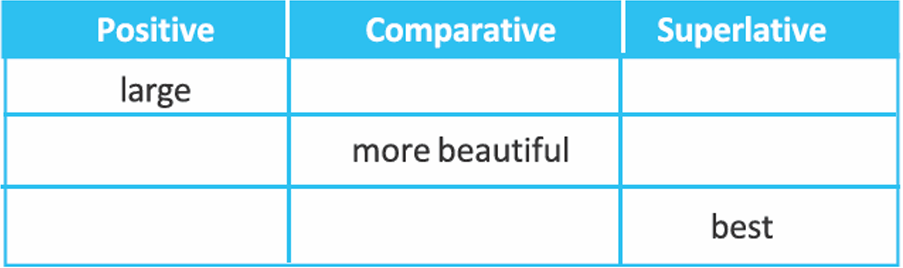 Write the positive, comparative, and superlative forms of the adjectives and fill in the chart given below: