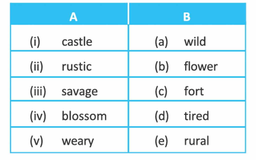 Match the words in column ‘A’ with their synonyms in column ‘B’: