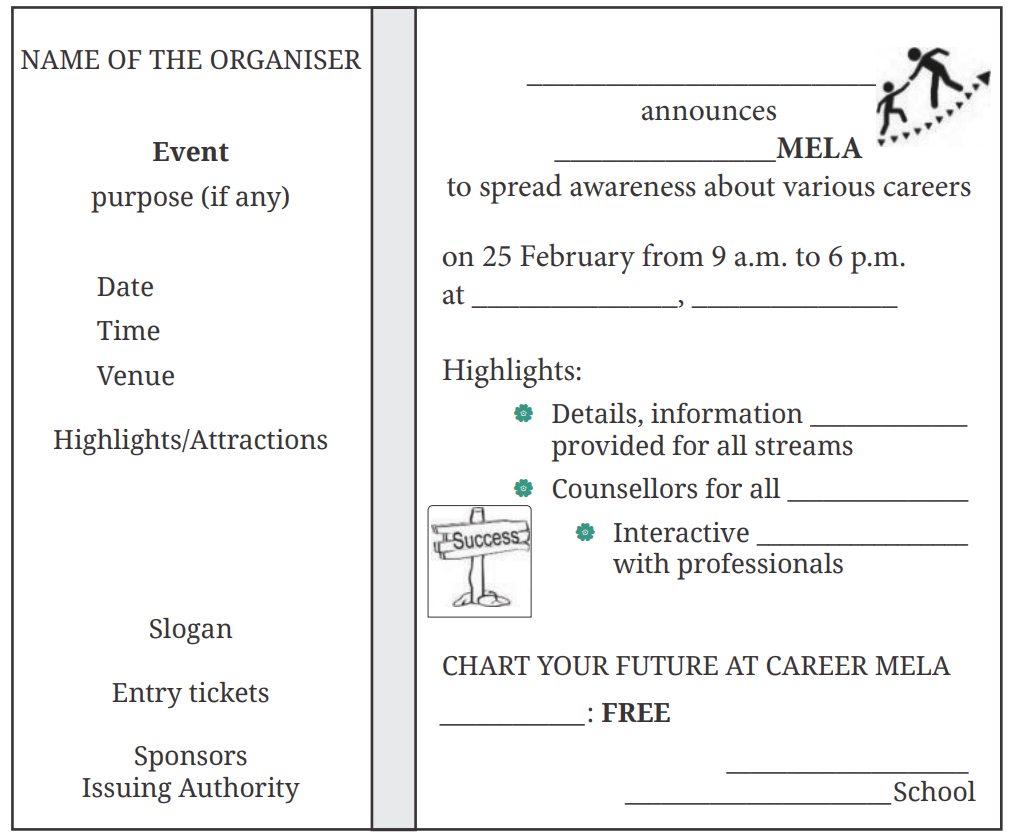 I. Your school will be organising a ‘Career Mela’ in which students are to be made familiar with the different career options. Complete the poster for the event given below.