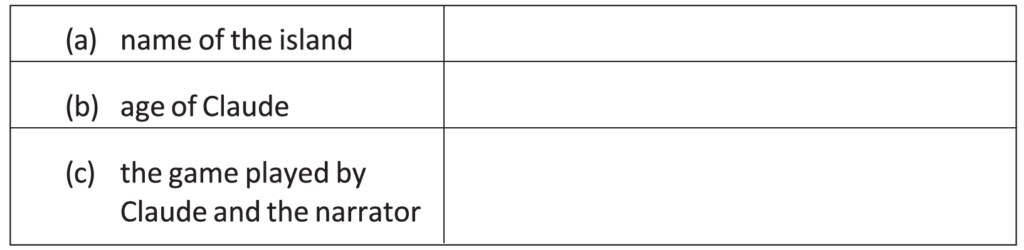 | (c) The game played by Claude and the narrator | They played shipwrecked mariners by signalling to each other with kites |