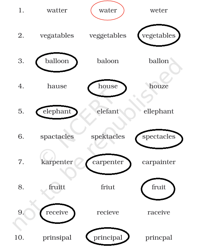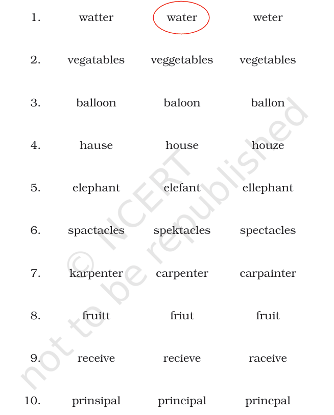 - C. Encircle the word that is spelt correctly. One has been done for you.