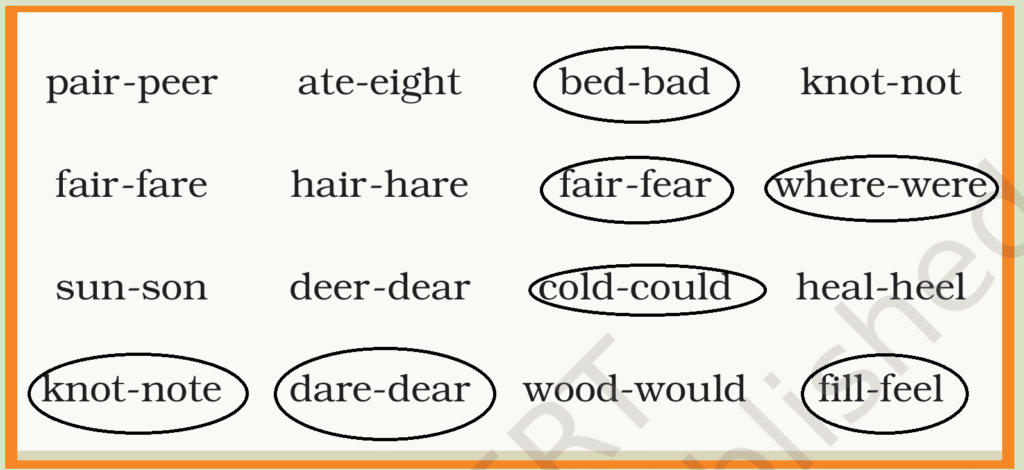 Your teacher will read aloud a few word pairs. Listen carefully and encircle pairs in which the words sound different.