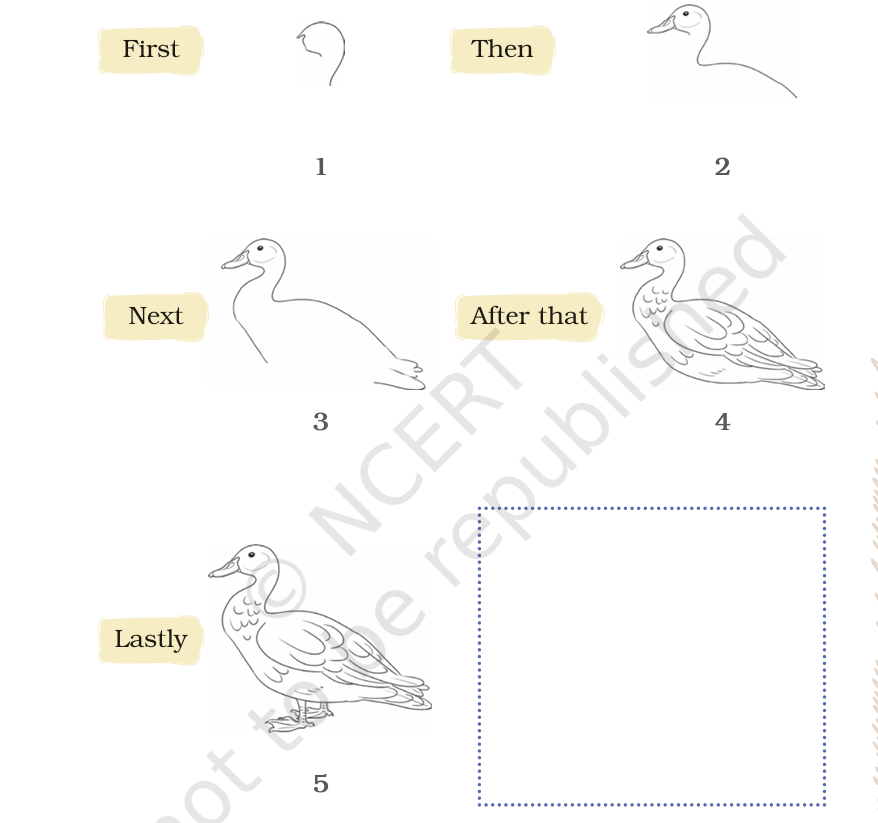 B. Look at the following steps carefully and draw a duck in the given space.