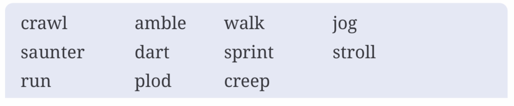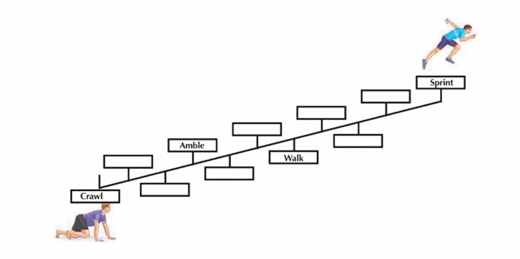 Arrange them on the word cline in increasing order of pace from the slowest to the fastest. Some examples have been done for you.