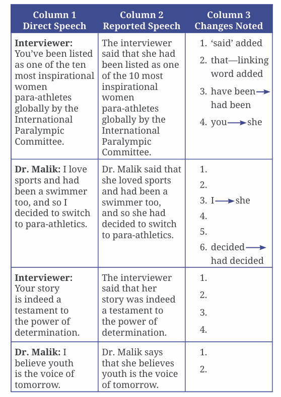 Siya said that she 1. ______________________________ . Tarun replied that he hadn’t known that Paralympics